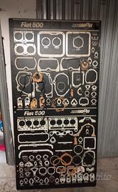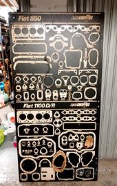 Lotto di 3 panelli Bifacciali Officina Fiat anni 70 espositori guarnizioni testate varie auto : Fiat 500 / 600 /1100 D e R /850 / 128 / 1300 e 1500/ 127 / 238 / 132 / 128 Rally / 124/124 Special /124 sport/ 125...introvabili.. I pannelli hanno dei ganci dove erano posizionate le varie guarnizioni. Ganci la maggior parte presenti .. ho anche una busta con molte guarnizioni comprese nella vendita ma non presenti tra le foto .Condizioni generali buone considerando l'età. Vendita tra privati con la formula visto e piaciuto. No assoluto a perditempo indecisi e affaristi grazie. Non è prevista la spedizione ma solo il ritiro su Roma.