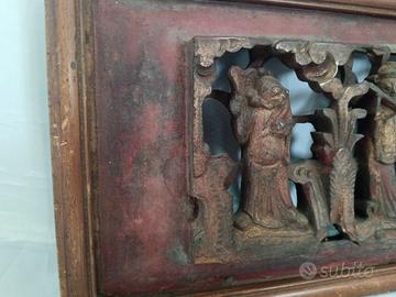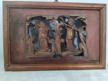 Pannello cinese in legno intagliato a mano XIX secolo.
