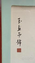 Pannello da parete arte cinese con composizioni in rilievo in madreperla e pietre dure