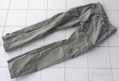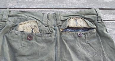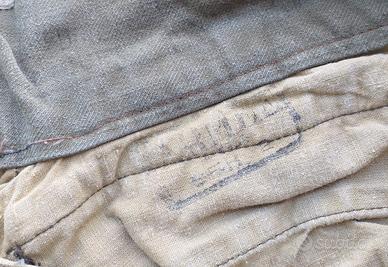 N168) Ottimo e totalmente originale paio di pantaloni dritti in cotone, dotazione coloniale dell'Esercito Francese, datati 1933. I pantaloni sono stati ovviamente usati ma sono ancora in buone condizioni, tutti i bottoni originali e la cerniera della tasca posteriore sono al loro posto. Inoltre, non ci sono macchie, buchi o strappi. Ci sono alcuni segni interni, sono un po' sbiaditi dopo 80 anni ma è possibile ancora leggere il produttore, la taglia forse 2 e l'anno 1933. La taglia è piccola, la vita può essere di circa 75 cm. e la lunghezza totale dei pantaloni è di circa 101 cm.(NB nessun impegno su taglie, vestibilità ecc. cedo esclusivamente come oggetto da collezione, grazie).