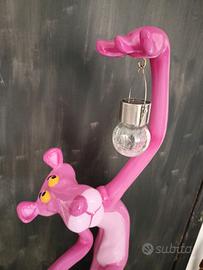 Riproduzione in vetroresina della Pantera Rosa,decorata a mano,conlampadina. Altezza 120 cm, base 36 cm.