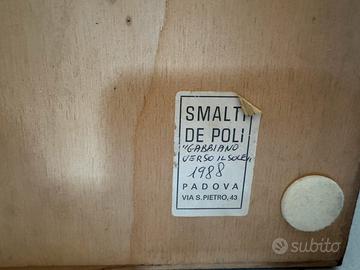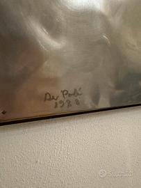 Rara opera firmata direttamente dall’artista Paolo de poli regalata alla critica d’arte Sergia Ferro . Opere del genere non venivano vendute ma fatte esclusivamente per musei o istituzioni come riportano i libri e cataloghi delle opere di paolo de poli, tuttavia alcuni esemplari vennero fatti per amici e per uso personale dell’artista. Presente ancora l’adesivo con la data dell’opera. Dimensioni: lunghezza 1 metro altezza 80 cm , solo il gabbiano misura circa 50cm e il sole 20cm . Ovviamente l’opera é nata come un’installazione unica fatta dall’artista non é stata assemblata successivamente. Perfetta per chi é un collezionista di Paolo de poli o Gio ponti e vuole un pezzo da museo in casa.