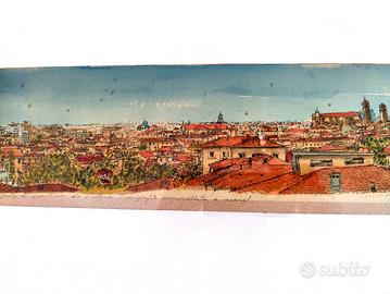 serigrafia acquarellata a mano di paolo zauli Bologna vista da via Cino da Pistoia (1984) vendo euro 400