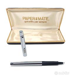 Paper Mate, rollerball pen, produzione fine ’70, inizio ’80. Fusto cromato satinato e sezione nera, cappuccio “W Germany”.
