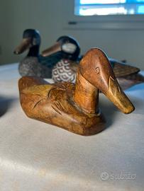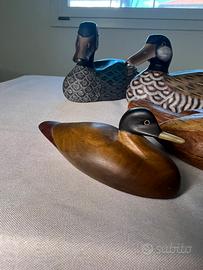 Set di 4 papere in legno intagliate e dipinte a mano. Le 2 più grandi sono articoli da collezione prodotte nella Repubblica Popolare Cinese