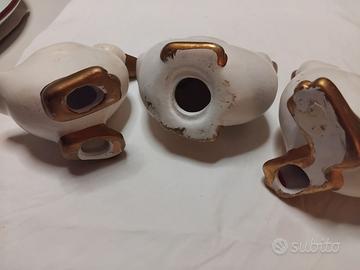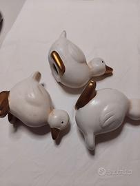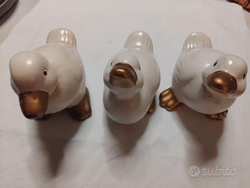 3 paperette in ceramica. Conservate in una vetrinetta. Integre. Sono degli anni 70