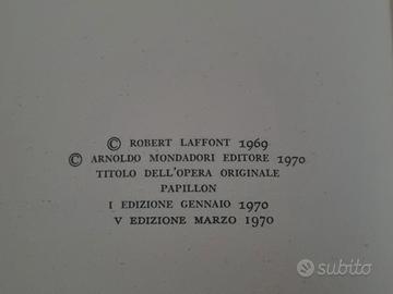 Papillon Henri Charriere Libro Mondadori Editore Quinta edizione 1970 romanzo