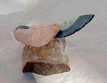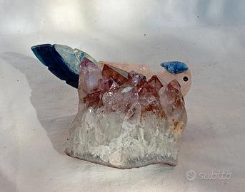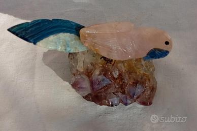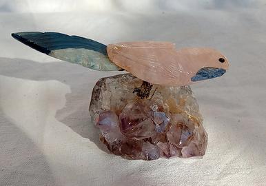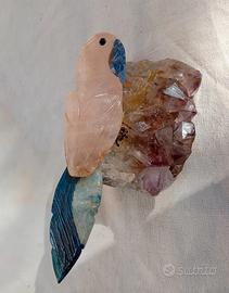 pappagallo in quarzo rosa su ametista