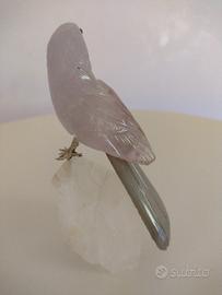 Adorabile pappagallo in pietre semipreziose su base di cristallo grezzo. altezza: 12 cm. peso: 356.