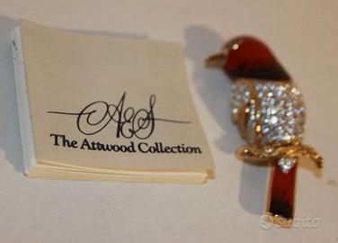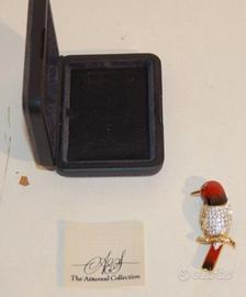 Spilla rara Attwood e Sawyer piccolo pappagallo smalto cristallo Swarovski placcato oro