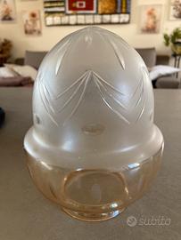 Paralume in vetro , satinato sopra e trasparente sulla parte bassa color marrone chiaro , presumibilmente anni 60/70 Circonferenza in basso cm 43