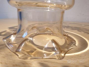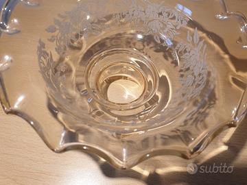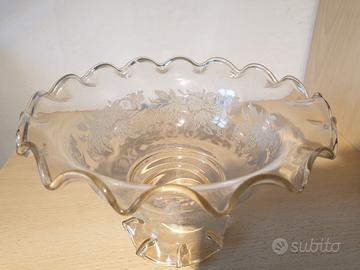 Paralume in vetro a motivi floreali. Altezza 13 cm , diametro base 10 cm , diametro alto 21 cm .