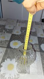 Paralume in vetro trasparente, ideale per lampade a olio vintage. -Imbocco est 45 - Design rigato - Forma a clessidra