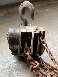 Vecchio paranco a catena da 500kg Funzionante. Ritiro e trasporto a carico dell’acquirente.