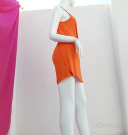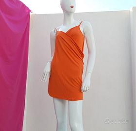 Pareo /Abito Copricostume in cotone arancione , con anelli .nuovo