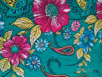 pareo , fantasia floreale su fondo turchese, marca Positano. Misure : 170 x 120 cm. Un piccolo difetto nella stampa del colore 8vedi ultima foto).