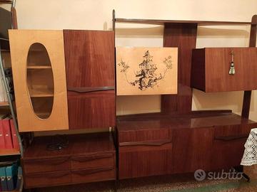 parete attrezzata sideboard metà secolo mid century anni 50 design Vittorio Dassi in legno di massacar condizioni ottime visibile e ritirabile a Casei Gerola in provincia di Pavia da lunedì a domenica ma solo su appuntamento