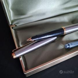 Parker 45 Flighter Deluxe stilografica vintage numero seriale 02299 pennino F versione Made in France. Ottimo stato con scatola originale e cartuccia inchiostro. Vendo € 68. No tutto subito Gradito contatto telefonico Cell.3478314154