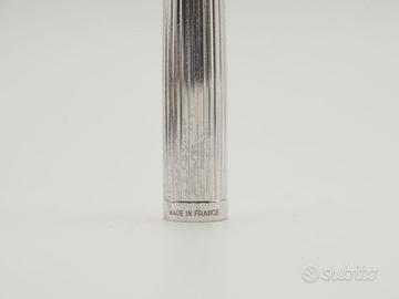 Penna stilografica vintage Parker 75 con trama "Gordon" placcata in rodio con pennino in oro 14k 585. Anno 70, "Made in France". In buone condizioni, perfettamente funzionante. Compresa scatola Parker. Le immagini stesse sono parte della descrizione dell'oggetto.