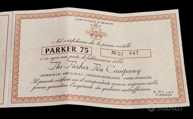 Bellissima ed elegante penna stilografica vintage Parker 75 in Argento 925. Il marchio Parker è garanzia di qualità e di successo. Perfettamente funzionante, ricaribile con flacone di inchiostro o con cartuccie. Fornita di certificato di garanzia