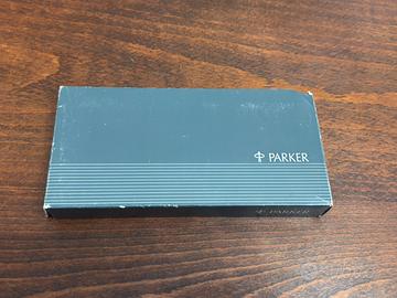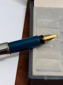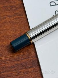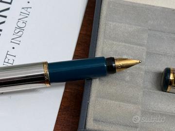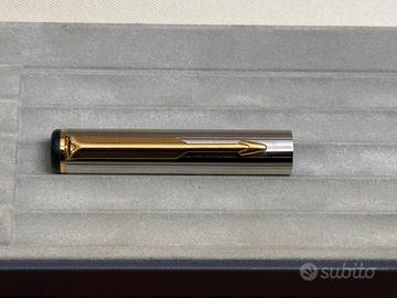 -Vendesi penna stilografica Parker Fountain Pen Rialto, in colorazione Argento-Oro, con richiami bottiglia.