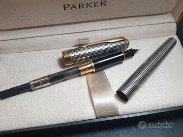 Bellissima e lussuosa penna stilografica Parker Sonnet Ciselé, in argento 925 sterling massiccio, pennino oro massiccio 18k 750, con converter originale. NUOVA, mai usata con scatola originale