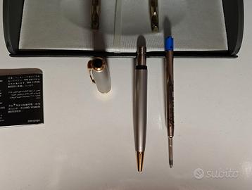 Penna a sfera PARKER SONNET FRANCE T III vintage colore argento satinato e rifiniture in oro, in perfette condizioni, con elegante astuccio originale e istruzioni.
