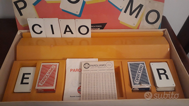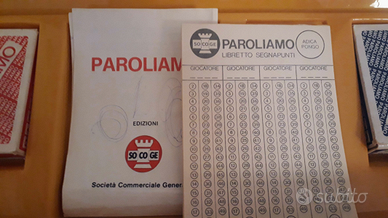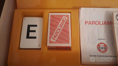 Paroliamo gioco in scatola anni '80, editrice Adica Pongo. Completo di scatola, foglietto di istruzioni con qualche leggero segno di penna, blocco segnapunti, 2 scatole con carte per vocali e consonanti. Manca la clessidra. Scatola con qualche segno di usura del tempo. Usato ma in buone condizioni.