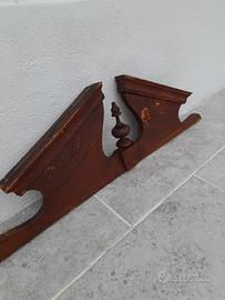 Parte di decoro dì testiera letto in legno massello, fatto a mano, risalente a metà 800,mai restaurata, lunghezza 1 m H 32 cm. Pezzo altamente decorativo soprattutto in un contesto moderno. come da foto riporta i segni del tempo.
