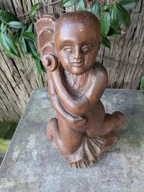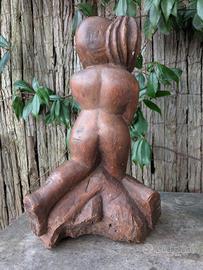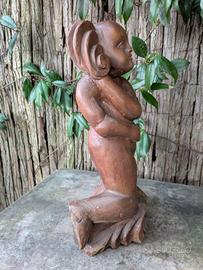 scultura in legno figura molto particolare vecchia segni di vecchi tarli altezza circa 40cm