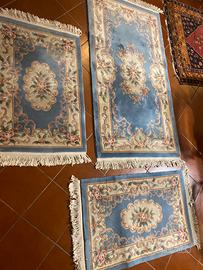 3 tappeti parure orientali in lana su base azzurra misura 190x90 misura 120x70