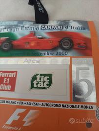 Esclusivo Pass/Biglietto n.814 per assistere alle prove libere del 71° Gran Premio Campari D'Italia di Venerdì 8 Settembre 2000, con accesso alla Zona 5 Ferrari Formula 1 Club, 2° piano terrazza sopra ai box.