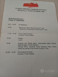 Incluso programma originale della giornata e due cartoncini brandizzati Ferrari.