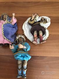 Gruppo di pastori vestiti cm 16 tipica lavorazione artigianale napoletana testa e arti in terracotta antica e corpo in paglia molto vecchi con vestiti fatti a mano. Non facili da reperire per la misura prezzo affare