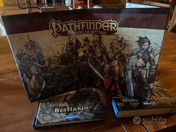 Come da titolo vendo Guida Pathfinder prima edizione e Bestiario completo di schermo per il Gm il tutto teuto perfettamente , no ammaccature no pieghe no scarabocchi vari