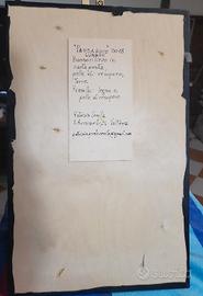 Creazione dell'artista italiana Patrizia Cerella. L'opera riflette appieno la sua ricerca artistica basata sul recupero dei materiali e sulla sperimentazione materica. Patrizia Cerella è una "Recycling Artist" con base a Volterra. La sua filosofia artistica ruota attorno al concetto di economia circolare e riutilizzo etico. Il suo stile distintivo consiste nel creare bassorilievi a stucco su legno o carta, sui quali applica poi collage o mosaici di pelle conciata di vari colori. Il pezzo è una pittoscultura, una tecnica che l'artista predilige per dare tridimensionalità ai suoi lavori. È realizzata utilizzando pelle di recupero, stucco e colori acrilici su un supporto rigido scuro. La Cerella utilizza spesso scarti di lavorazione conciaria (tipici della zona di Volterra dove opera) per creare texture organiche. La composizione presenta un elemento verticale chiaro che ricorda un frammento di roccia o un fossile, sul quale sono impresse delle impronte simili a quelle umane o primordiali. In alto a destra, un elemento circolare tridimensionale rappresenta la Luna, caratterizzata da una profonda fenditura centrale scura che evoca un occhio o una fase lunare particolare. Il titolo suggerisce un transito, un legame tra la terra (le impronte) e il cosmo (la luna). Le venature naturali della pelle e le cuciture a vista accentuano l'aspetto arcaico e "vissuto" del manufatto, trasformando materiali di scarto in un paesaggio onirico. Titolo: Passaggio lunare Periodo realizzazione: 2018. Tecnica: mista, pelle di recupero, cartapesta e terre su legno Dimensioni: 30x50 Firma in basso a sinistra. Autentica sul retro.