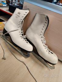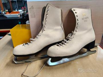 Pattini da ghiaccio vintage marca Ice-King. Taglia 25 - Colore bianco. - Realizzati in Austria. - Lacci grigi.