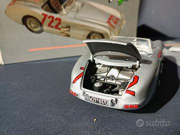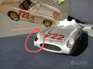 Paul Models Art: Mercedes Benz 300 SLR 1955 (722)Fangio scala 1:24 Un raro modello in scala 1.24, completo di scatola bianca (come da retro prima foto): La Mercedes Benz 300 SLR 1955 (722) dei famosi piloti Juan Manuel Fangio e Stirling Moss. ATTENZIONE: MANCA IL COPRIFARO COME DA SEGNO ROSSO SUL FANALE SINISTRO FRONTALE