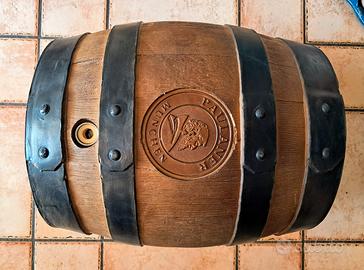 fusto da 30 litri (vuoto) in acciaio inox ricoperto in plastica, a vederlo sembra di legno molto bello completo della sua valvola della regolazione sfiato, rubinetto e martello in legno TUTTO ORIGINALE e perfettamente funzionante.