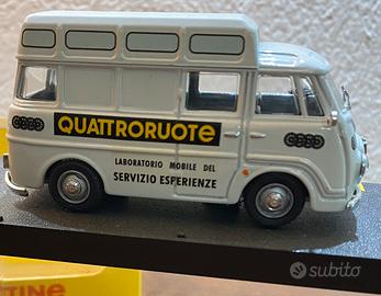 Edizione Speciale che riproduce il laboratorio mobile dí Quattroruote, in uso dal 1956, anno di fondazione della rivista. Scala 1:43, metallo, made in Italy. Perfetto, in scatola e teca originali.