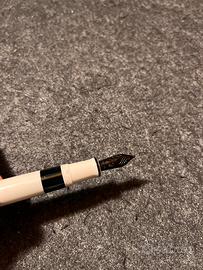 Penna stilografica a stantuffo in edizione speciale: Pelikan Souveran Warm Grey, con pennino largo (B), in condizioni perfette. Usata poco. Scatola non inclusa. Ispirata dai toni grigi naturali terrosi che sono attualmente di gran moda nell'industria automobilistica e dell' interior design, Pelikan Souveran M670 Warm Grey combina estetica e funzionalità. Il grigio morbido e caldo è sinonimo di equilibrio e appagamento, garantendo stabilità ed equilibrio interiore, esattamente ciò che ci si aspetta da una penna stilografica di alta qualità. Le finiture sono caratterizzate da un rivestimento PVD (Physical Vapour Deposition) di colore nero. Questa tecnologia non solo garantisce eccezionale robustezza e solidità, ma conferisce anche agli strumenti di scrittura un tratto distintivo. Fermaglio ed anelli sono perfettamente abbinati al grigio naturale e creano contrasti estremamente eleganti. Un punto di forza della Pelikan Souverän 670 è il pennino in oro 14 carati, di colore nero. E' stato anch'esso rifinito con un rivestimento PVD nero e garantisce un'esperienza di scrittura fluida e senza sbavature.