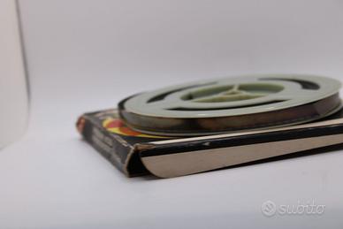 All’interno si trova la bobina in plastica con pellicola originale, un oggetto da collezione ideale per amanti del cinema muto, dei corti comici e del materiale cinematografico d’epoca.