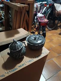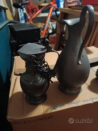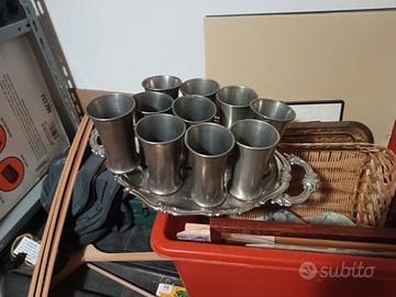 bicchieri e caraffe in peltro più vassoio