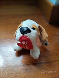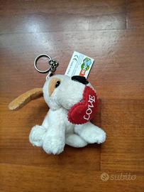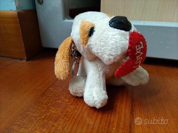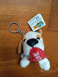 Piccolo Delizioso CANE PORTACHIAVI peluche romantico con cuore in bocca.