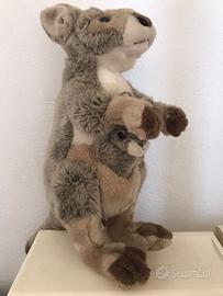 Adorabile peluche di un canguro con il suo piccolo. - Marca: A. Venturelli - Design: Canguro con cangurino nella tasca - Materiale: Morbido peluche