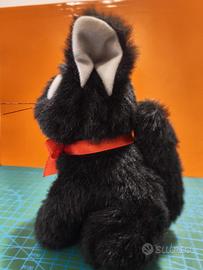 Peluche di un gatto nero, Studio Ghibli, alto circa 16 cm, con un fiocco rosso al collo. Città: Bologna.