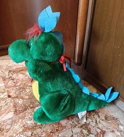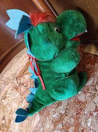 1 - Peluche vintage “Prezzemolo” alto cm 34, la storica mascotte del parco divertimenti italiano Gardaland, draghetto verde con lunghe orecchie che sembrano appunto foglie di prezzemolo. Questa è la versione originale dopo il 1975. Completo di accessori, un po' vissuto per l’usura del tempo;