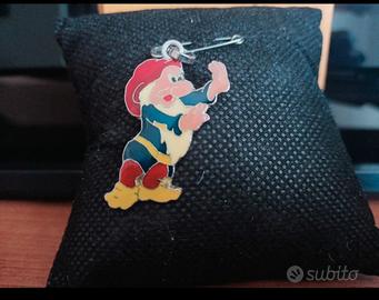 Vendo pendaglio vintage Disney Brontolo (Grumpy) ufficiale anni '70! Raro ciondolo a forma di Brontolo, il nano burbero dei Sette Nani, prodotto in Italia dal licenziatario autorizzato Francesco Giorgi di Vicenza. Sigillo originale "Walt Disney Productions © 632VI 600" che ne certifica l'autenticità. Perfetto per collezionisti Disney o amanti del vintage! Caratteristiche Principali materiale: Argento 925 con smalti colorati vivaci (tipico dei pezzi Giorgi Disney). Design: Brontolo in pose espressiva, dimensioni ca. 2-3 cm, ideale per collana o bracciale. Condizioni: Ottime, ben conservato senza danni visibili (verifica foto).
