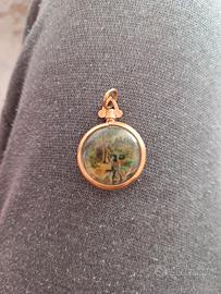 Bellissimo pendente antico in oro 18kt con miniatura dipinta a mano. Probabilmente italiano o francese