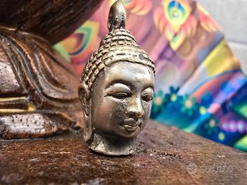Questo pendente raffigurante il volto del Buddha è un oggetto che unisce spiritualità e fascino estetico. Realizzato in metallo con una fusione che ne delinea i tratti classici, come l'urna sulla fronte e la tipica acconciatura a piccoli ricci definiti, l'oggetto si presenta con una patina autentica e vissuta che ne esalta i volumi e la profondità dello sguardo. Con un peso di 12 grammi, risulta solido al tatto ma perfetto per essere indossato quotidianamente o aggiunto a una collezione di arte orientale. La finitura superficiale ha assunto nel tempo tonalità calde che richiamano quasi la materia della terra, rendendo ogni riflesso unico e mai piatto. È un pezzo versatile: può essere il punto focale di una collana importante o un oggetto decorativo da tenere in un angolo dedicato alla meditazione. Si presta benissimo come idea regalo per chi ama la cultura asiatica o per chi cerca un amuleto dal design senza tempo. L'oggetto è in ottime condizioni conservative, con i segni del tempo che ne testimoniano l'autenticità e ne accrescono il valore estetico. Disponibile per consegna a mano a Reggio Emilia oppure spedizione tramite il servizio di Subito.it.